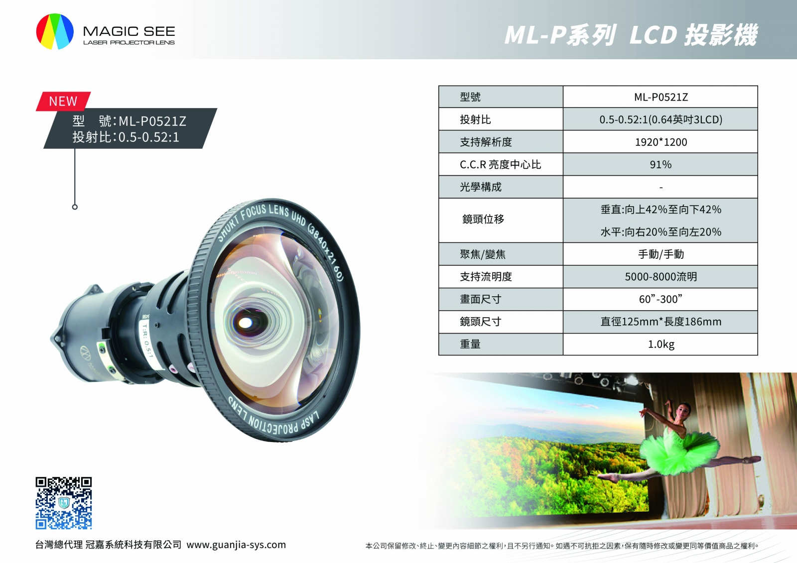 適用Panasonic PT-VMZ系列 投射比0.5-0.52:1