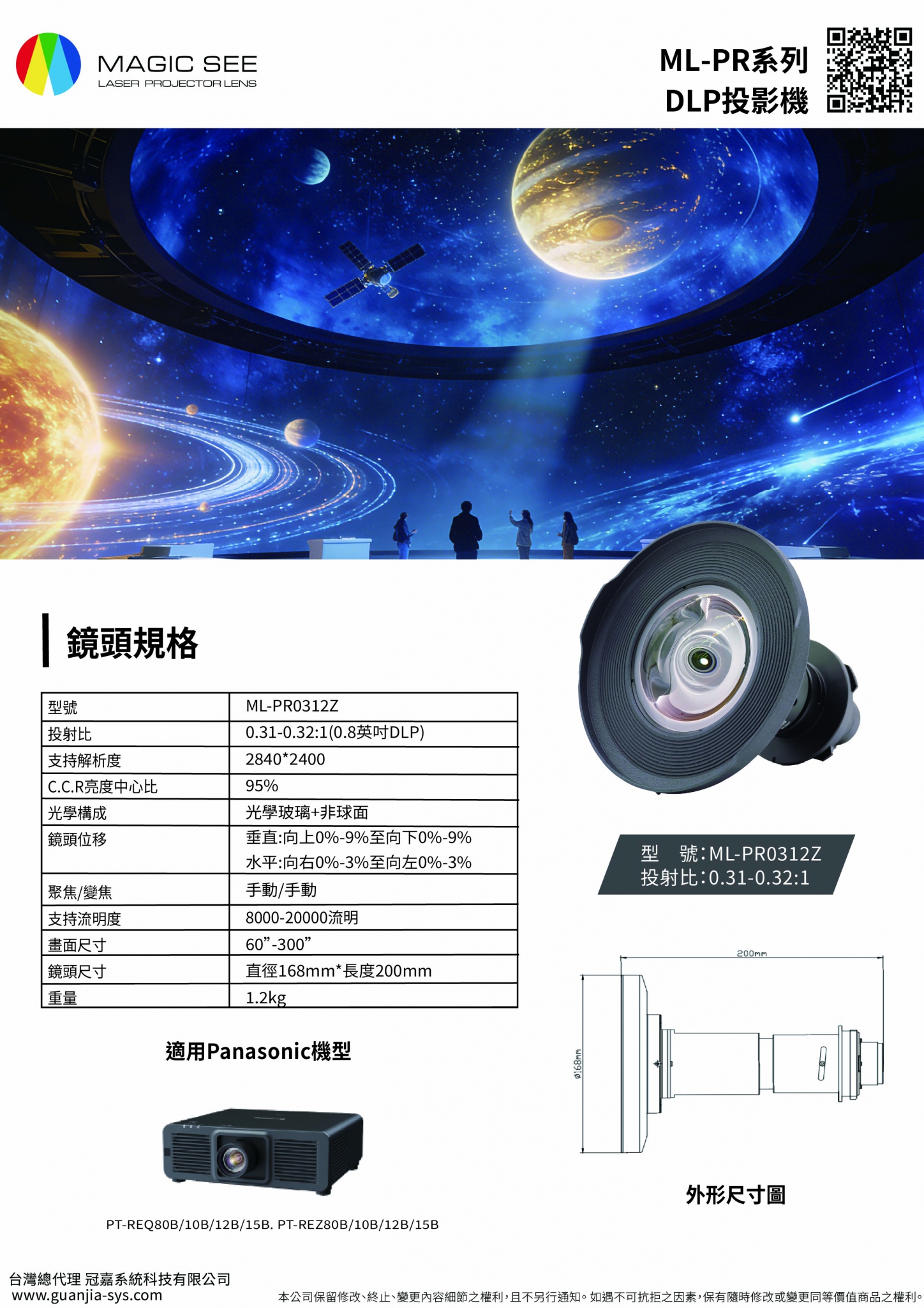適用Panasonic PT-REZ.PT-REQ系列 投射比0.31-0.32:1