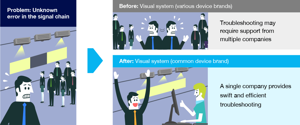 選擇同一品牌所生產的投影機與沉浸式媒體處理器,具備多項實際優勢,且不僅僅是因為產品之間能夠完美無縫整合運作。使用同一系列的設備,也能讓故障排除與維護作業更加簡單有效。相較於必須分別向多家製造商尋求支援,以處理不同投影機或媒體處理器的問題,現在只需由Panasonic 專業技術支援人員即可同時針對投影機與沉浸式媒體處理器進行整合性故障排查,大幅節省時間與人力資源成本,提升整體維運效率。